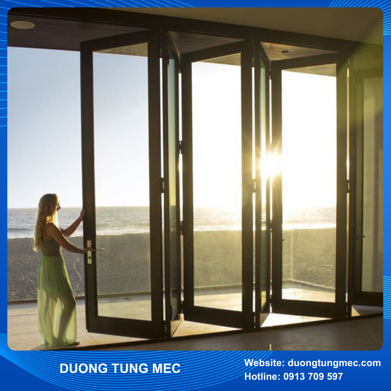 Cửa xếp trượt được cấu tạo bởi: khung nhôm, kính, hệ phụ kiện và gioăng keo.