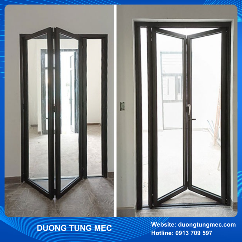 Cửa đi xếp trượt được lắp ghép bởi các thanh nhôm và kính, là sự kết hợp cửa dạng cửa vừa trượt vừa xếp. Chúng được đóng mở bằng cánh trượt trên ray treo và ray dẫn hướng âm sàn. Cửa đi mở xếp trượt 2 cánh có thể mở rộng không gian và tận dụng ánh sáng tự nhiên một cách hiệu quả.